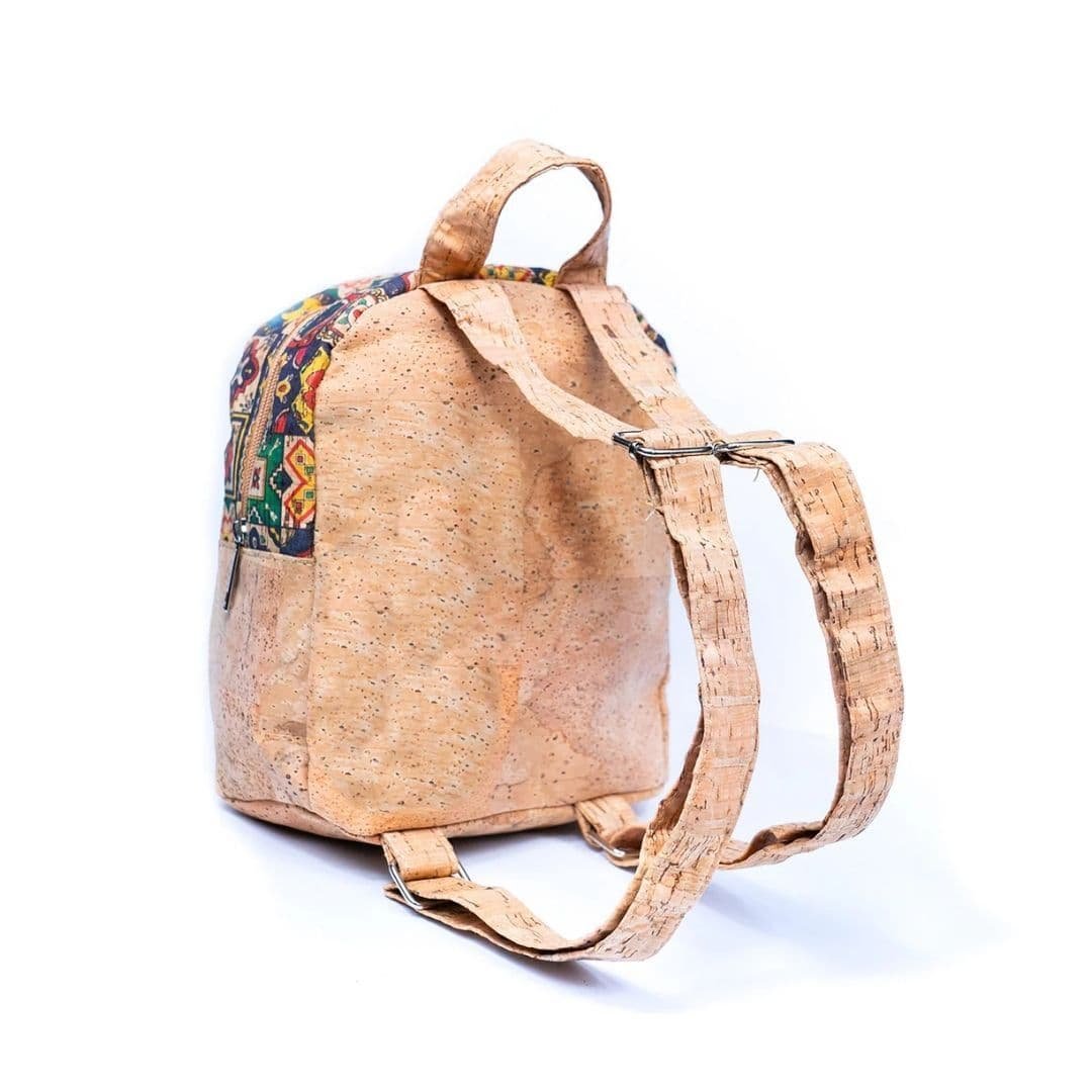Mochila pequeña elaborada artesanalmente en corcho natural, con diseños que aportan un estilo distintivo.
