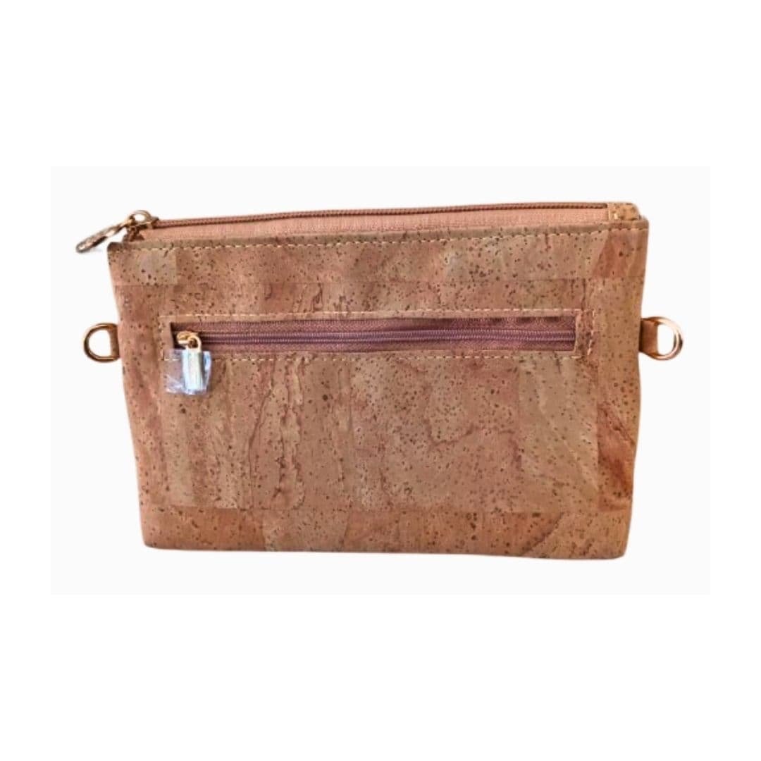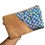 Bolso pequeño elaborado artesanalmente en corcho natural y tela satinada con diseños, que aporta un estilo elegante y distintivo.